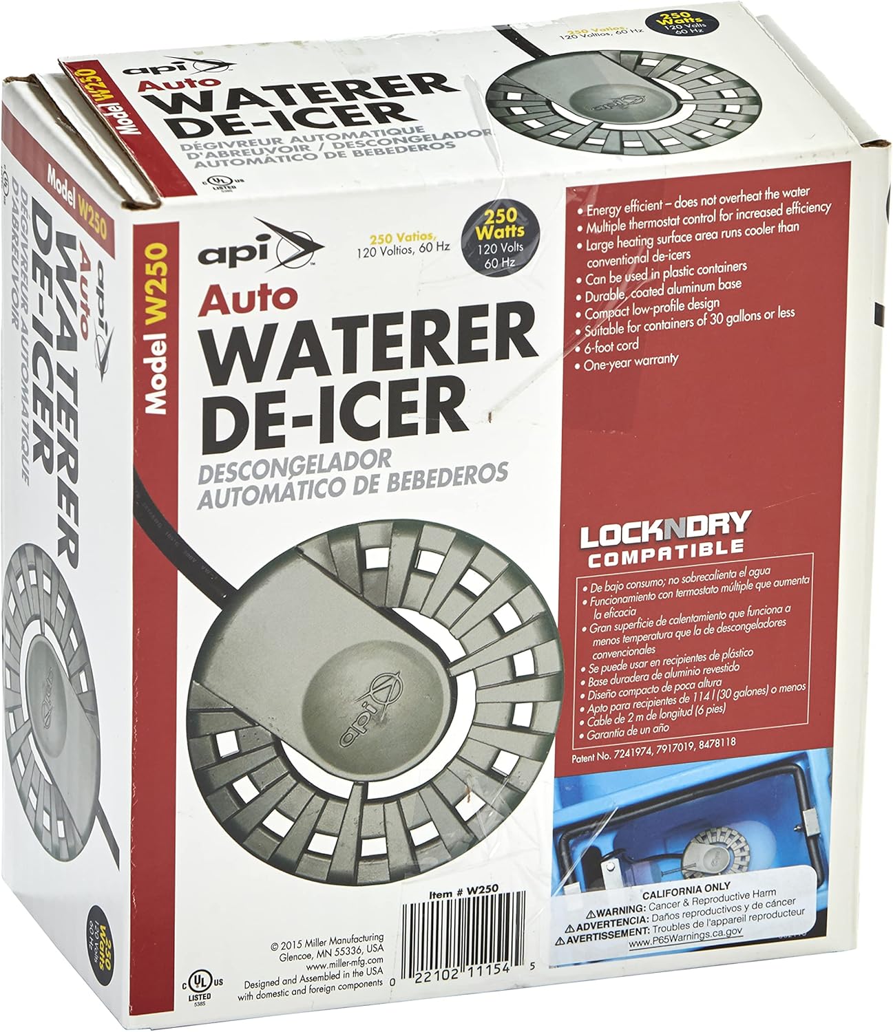 API Automatic Waterer De-Icer 250W Stock Tank Heater Safe Plastic Up to 30 Gal