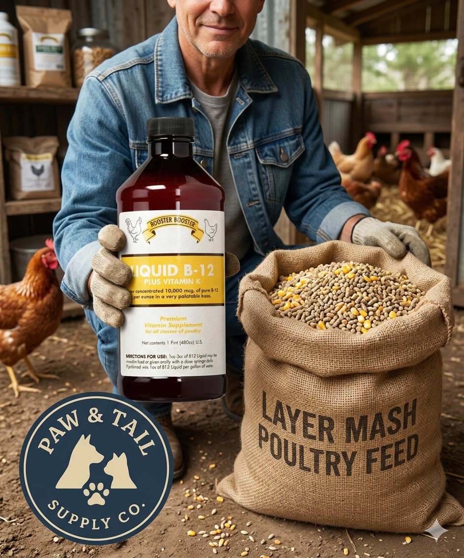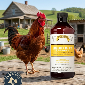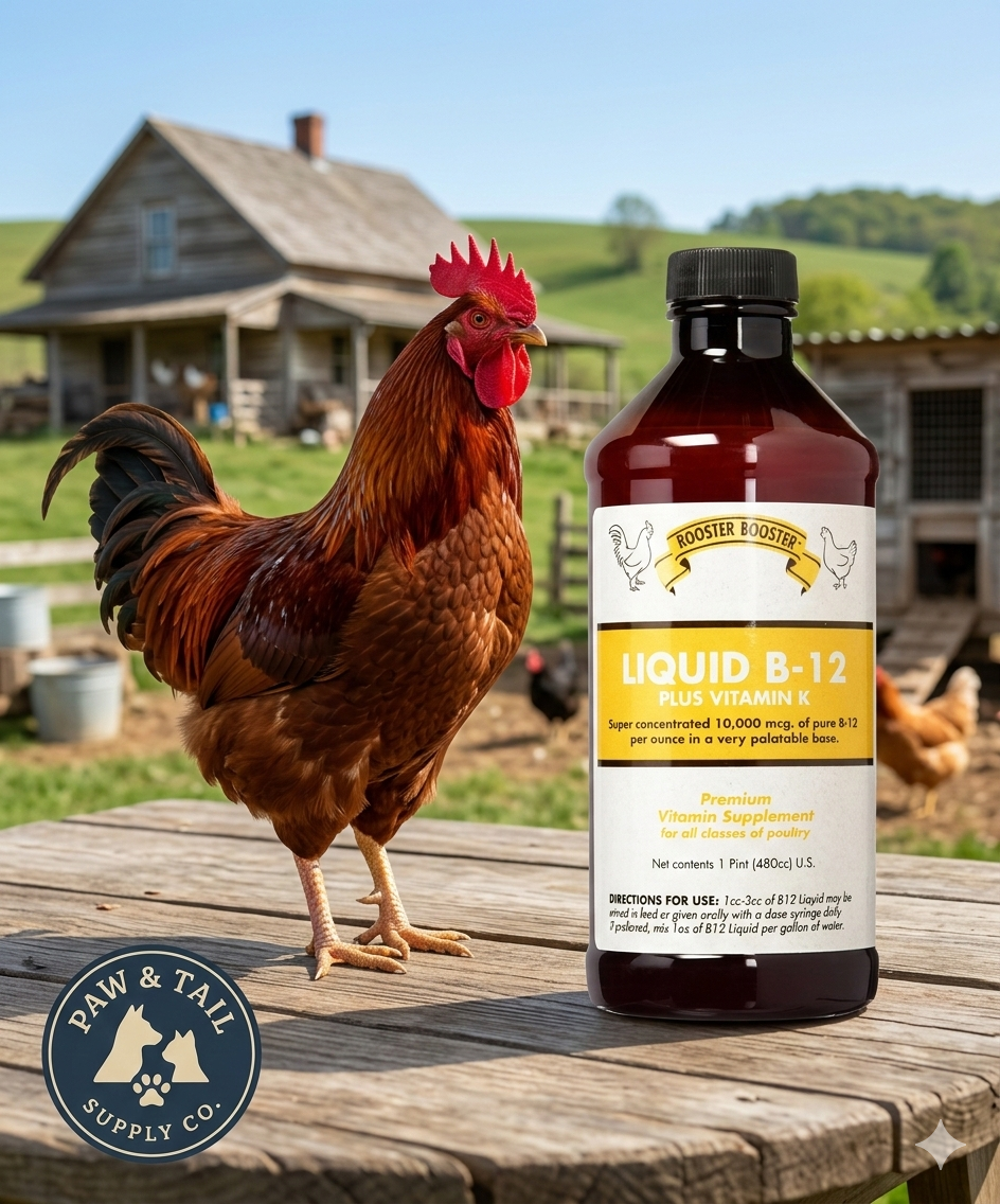 - Liquid B-12 + Vitamin K supplement for all poultry (16 oz)