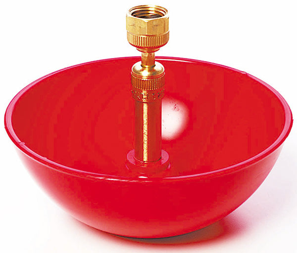 Why Choose Game Bird Automatic Fount: ✓ Waters up to 175 birds with 2 pint capacity ✓ Limitless supply of clean water with automatic operation ✓ Standard 1/2" NPT pipe connection with included hardware ✓ Non-rusting brass fountain stem for durability ✓ Safe 20-50 PSI pressure valve operation ✓ Heavy-duty plastic bowl construction ✓ 6.5" diameter x 2.5" deep optimal dimensions ✓ Perfect for game birds and small chicken breeds