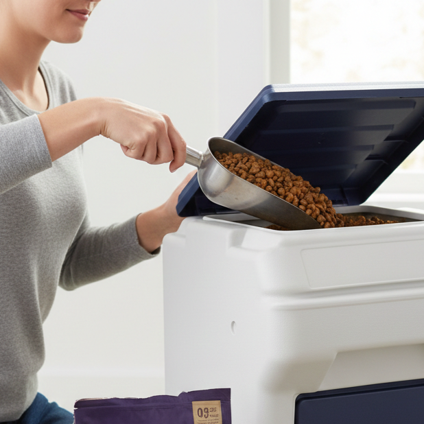 Bergan Aut-O-Dine 25 Pet Feeder Gray/Blue Auto Dry Food Dispenser 25 lb