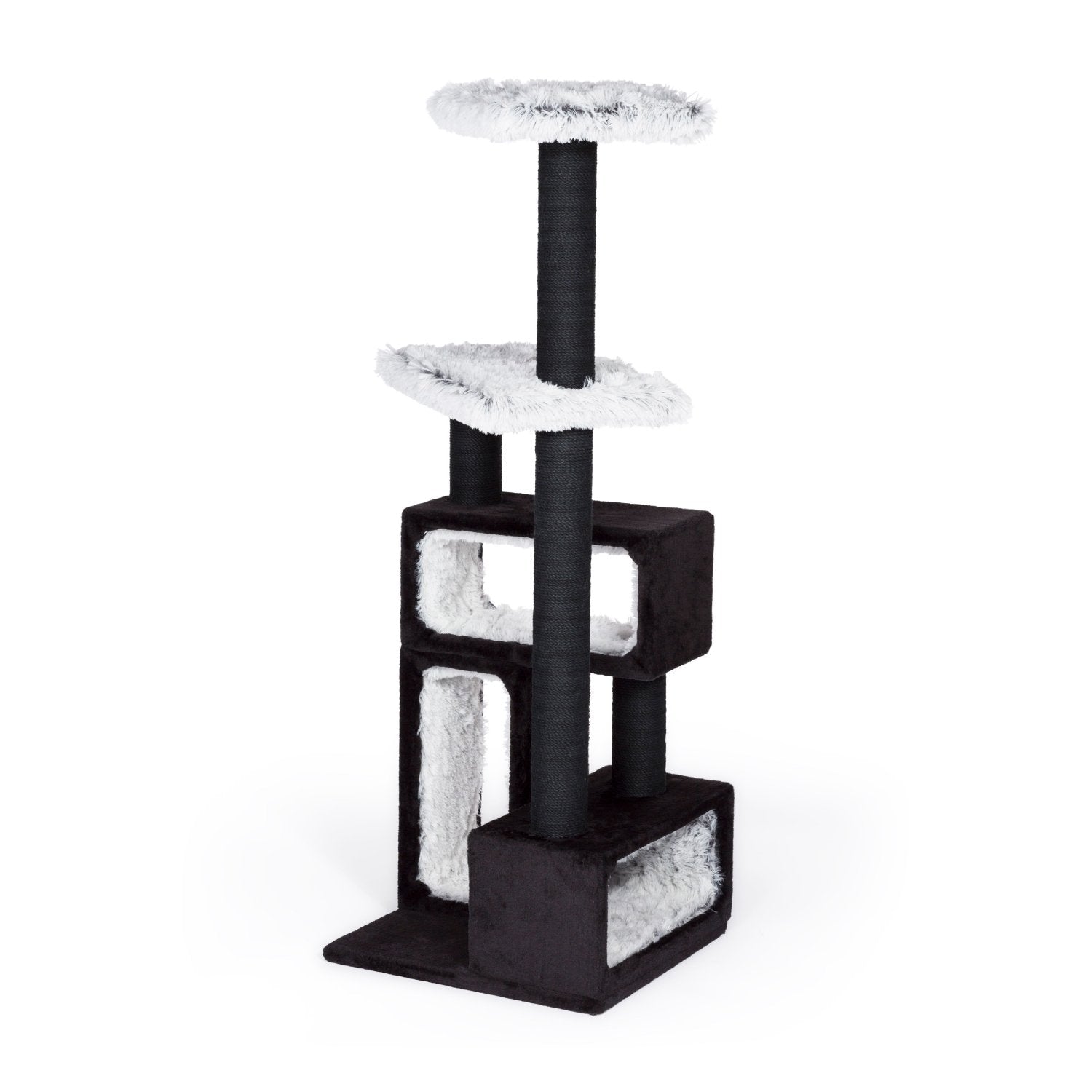 Prevue Pet Products Kitty Power Paws Domino features two platforms covered in soft plush, three hideout spaces, and jute scratching posts. Scratching posts help satisfy natural clawing instincts, helping to keep your furniture safe from destructive restless behaviors. Hideout spots and platforms are coated with soft plush floors and walls, giving your cat or cats comfortable spaces to play, rest, and relax.