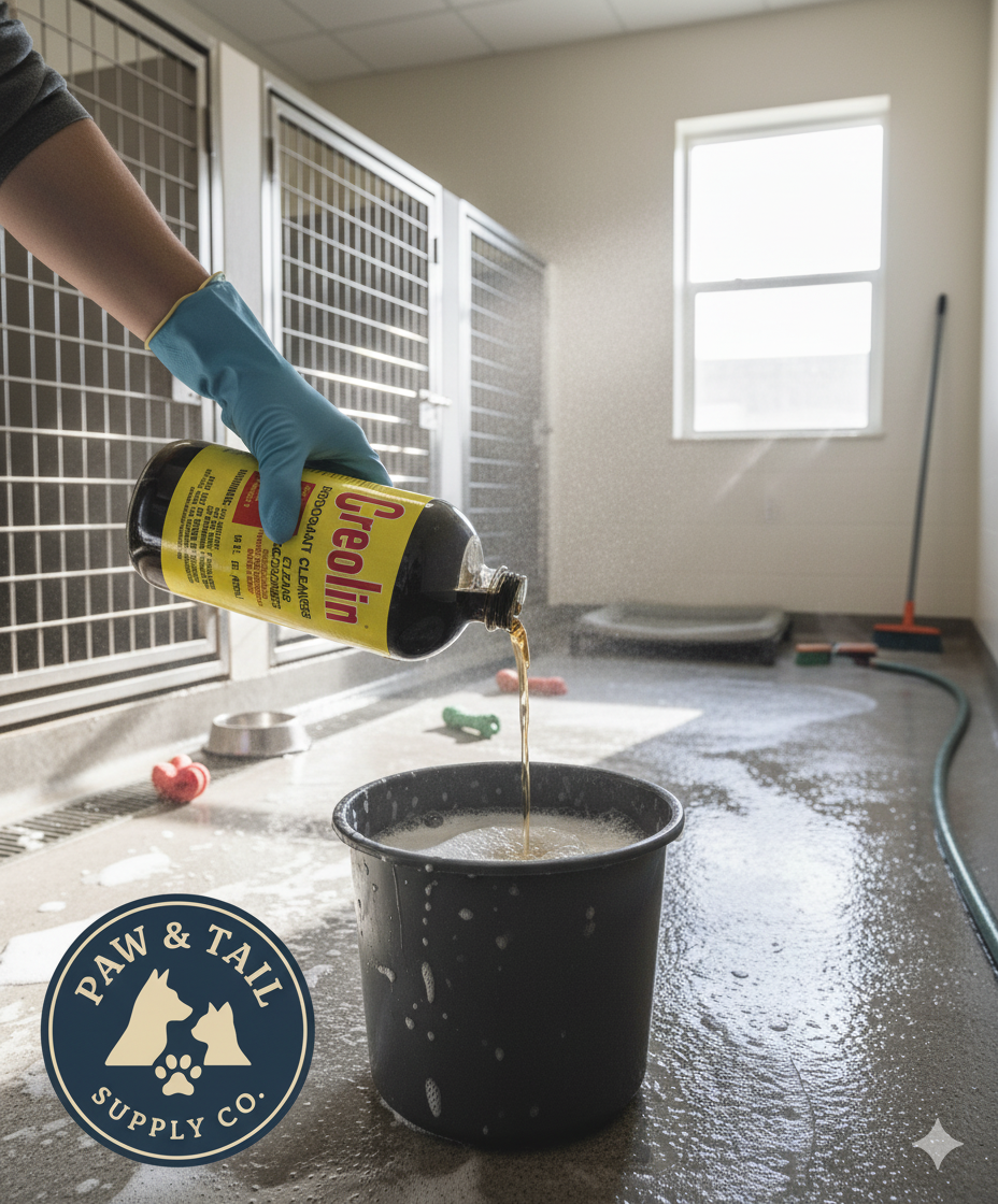 A concentrated coal tar based cleanser for use in animal quarters, kennels, & for general household use. Creolin kills orders on most environmental surfaces As well as bacteria, staph, mites, & insects.