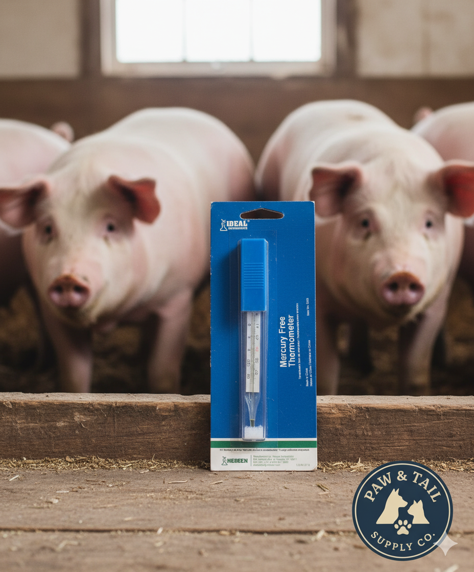 Ideal's veterinary thermometers are made to provide long and accurate service. Thermometers are 5" long and easy-to-read. Normal temperatures for horses, sheep, pigs, cows, and dogs are included. Ideal's digital thermometer is quick-reading, beeps when ready and displays digital temperatures in Fahrenheit.