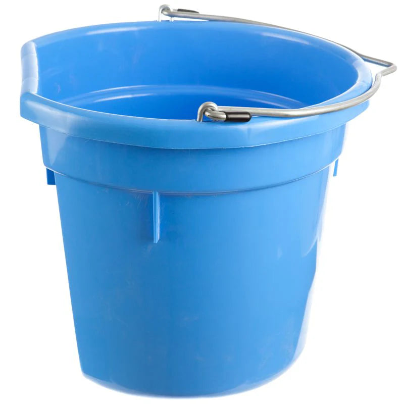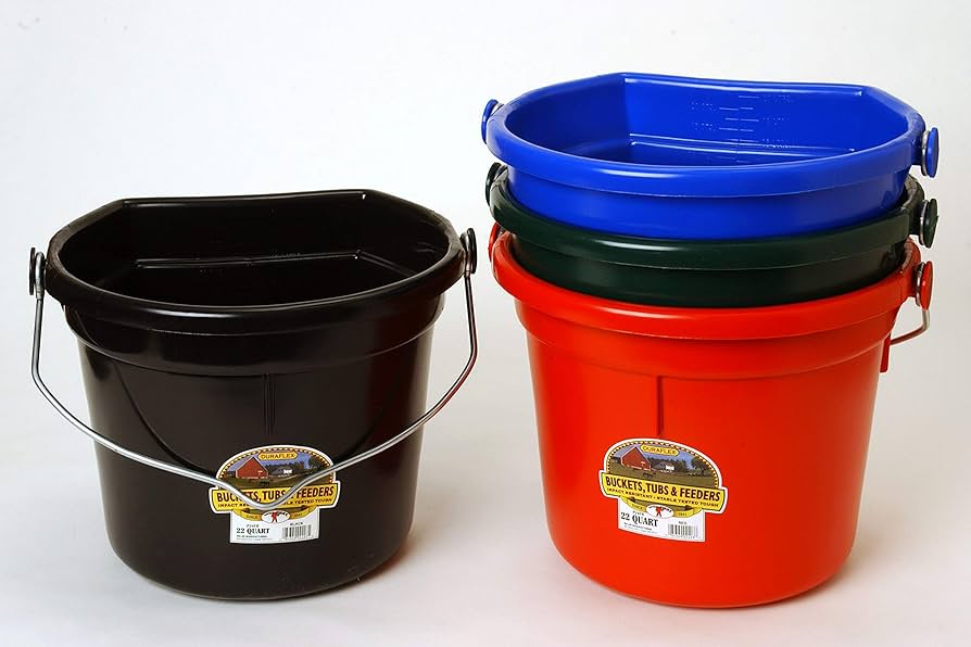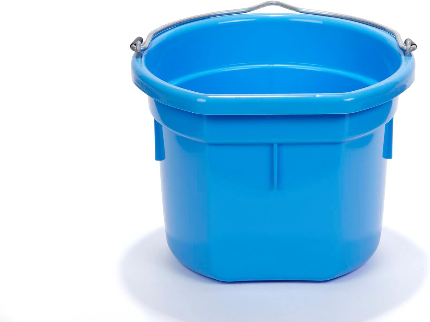 Why Choose Little Giant Flat Back Bucket: ✓ Flat back design fits compactly against walls and fences ✓ 5 gallon (20 quart) capacity for substantial feed storage ✓ Heavy-duty wire bail with hanging notch ✓ Impact-resistant polyethylene prevents warpage and cracks ✓ Stacking ribs for easy separation when stacked ✓ Berry blue color that's fade-resistant and attractive ✓ Farm and ranch favorite trusted everywhere ✓ Perfect for heavy load hauling and storage