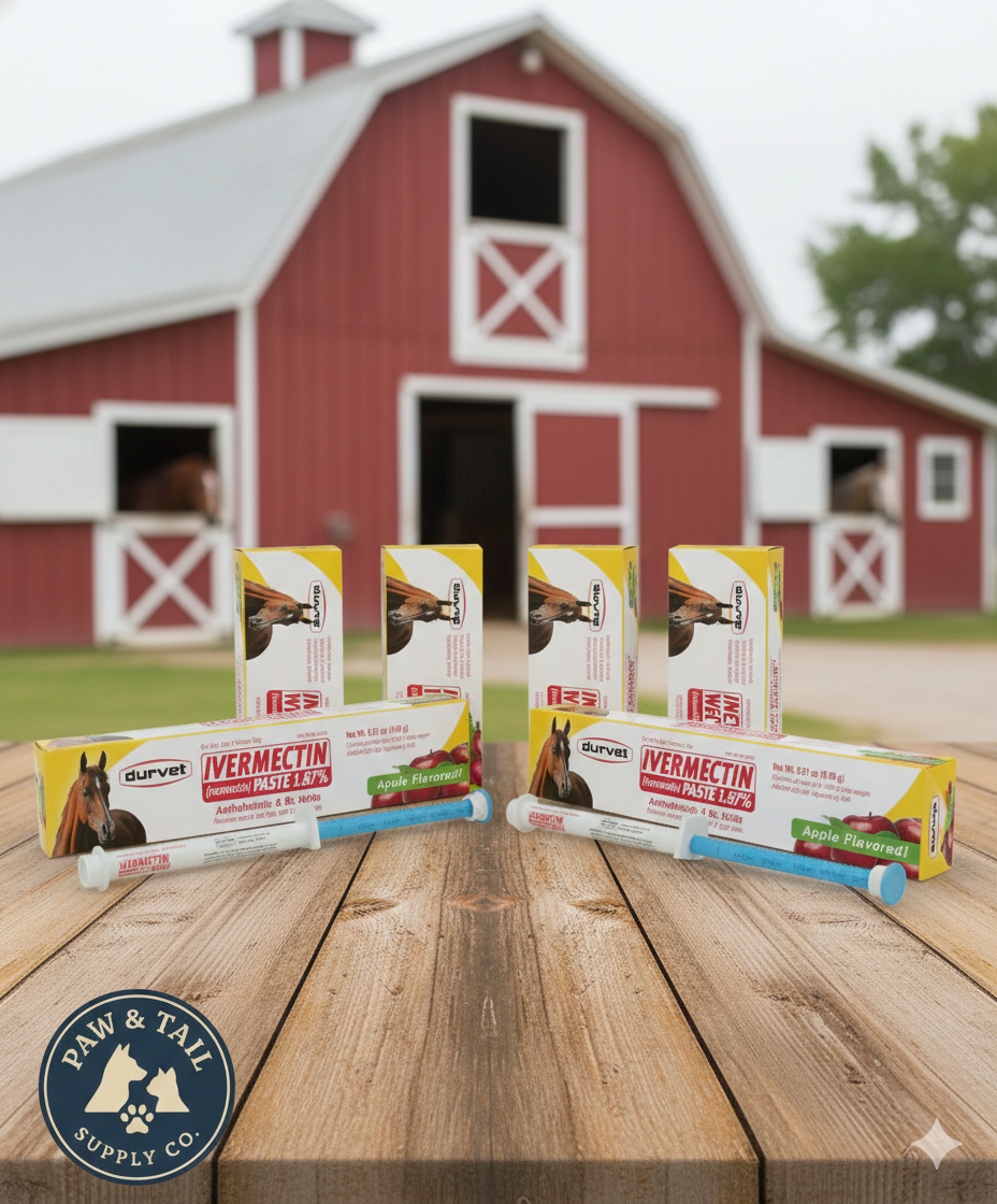 Durvet Ivermectin Horse Wormer Apple Flavor Broad Spectrum Equine Dewormer 4PCK