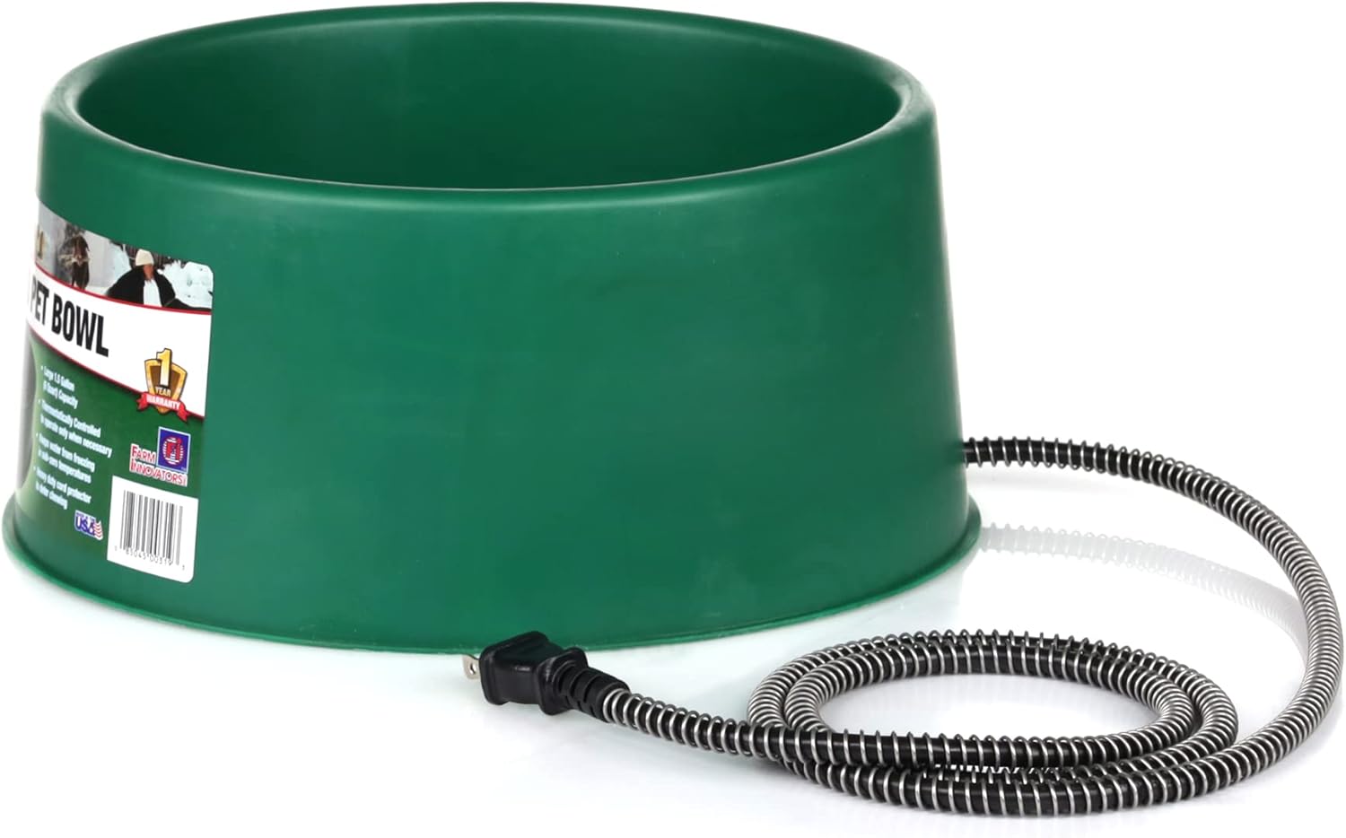 Farm Innovators 1.5Gal Heated Pet Bowl Green 60W Anti-Chew Cord Dogs Cats Winter
