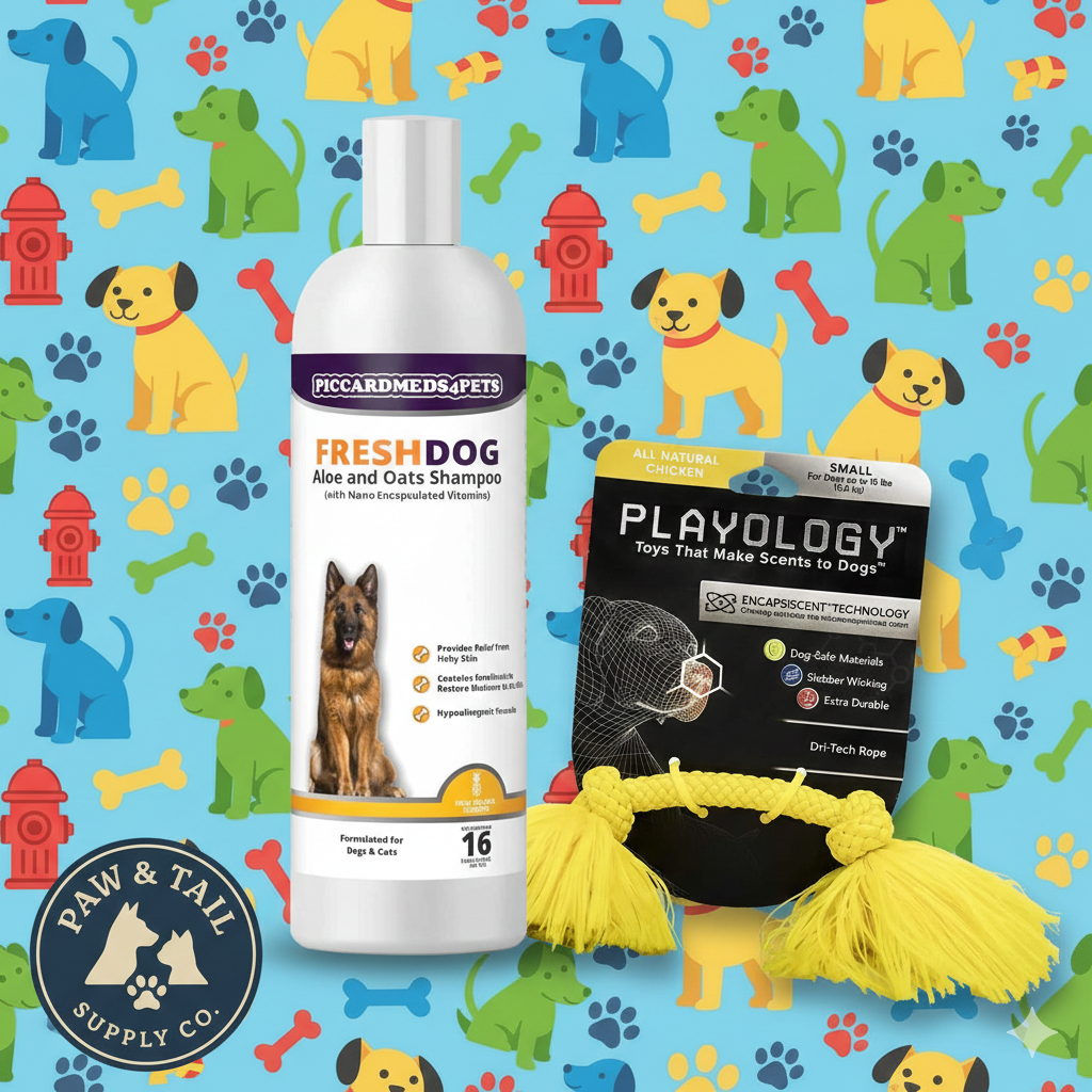 Piccardmeds4pets Fresh Dog Shampoo 16oz + Playology Dri-Tech Rope Toy Combo