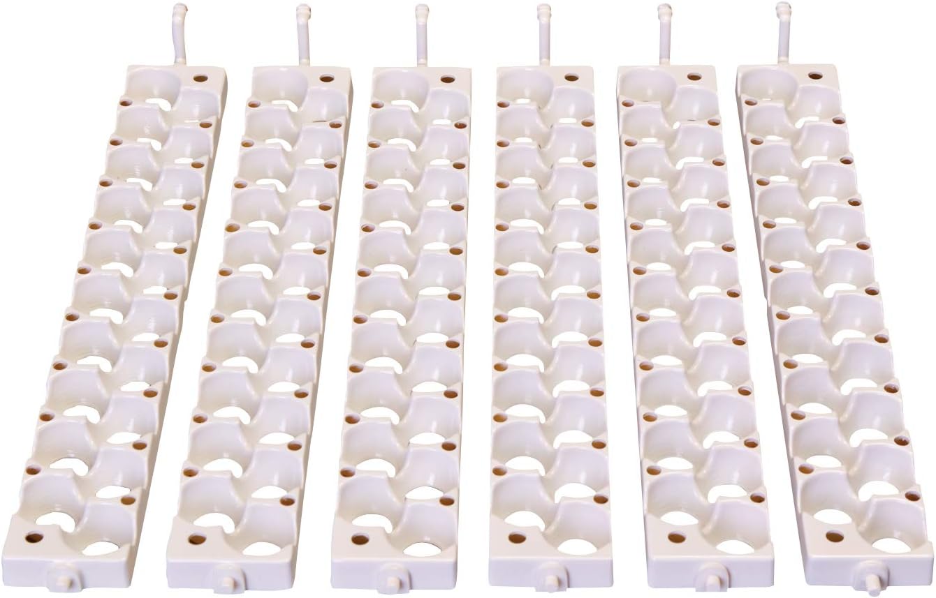 Little Giant Quail Rails are designed for quail and other small eggs. These 6 rails fit into the Little Giant Model 6300 automatic egg turner, with each rail holding 20 small eggs for a total capacity of 120 eggs. Dishwasher safe for easy cleaning. Made in the USA.