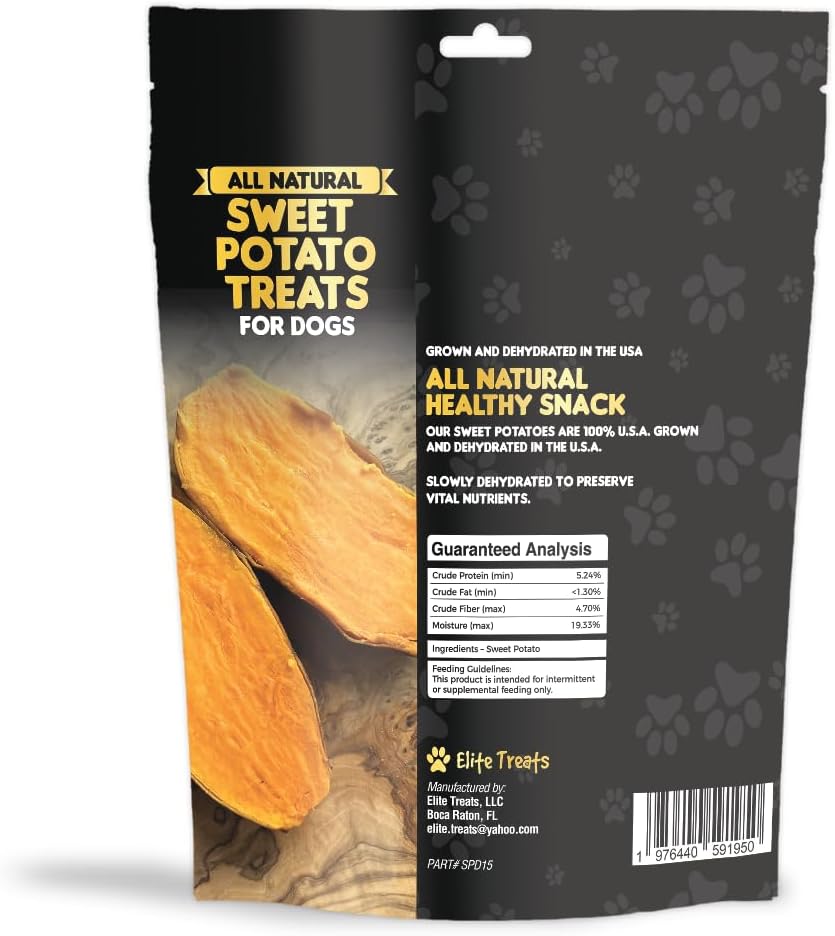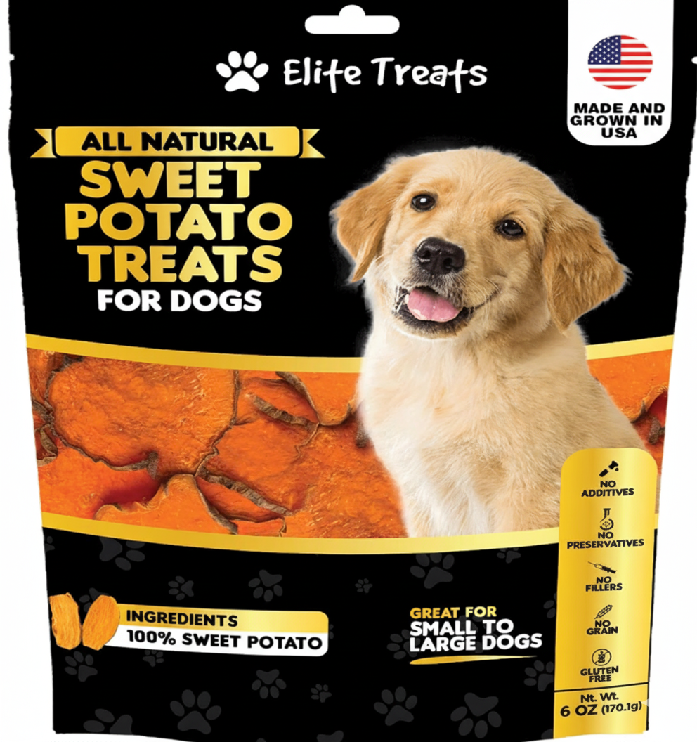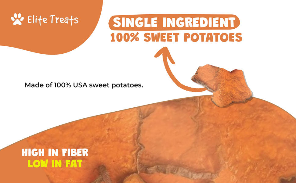 Elite Treats Sweet Potato Dog Treats USA Made 100% Sweet Potato Natural Grain-Free 6 oz. Bag