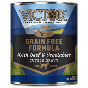 Enriched with premium beef and vegetables in a flavorful gravy, Victor Grain Free Beef and Vegetables Canned Wet Dog Food 12-Pack is the perfect complement to VICTOR super premium dry dog food. Formulated for all breed sizes, this grain-free canned food provides balanced nutrition for normal puppy and adult dog growth and maintenance, excluding large breeds over 70 lbs.