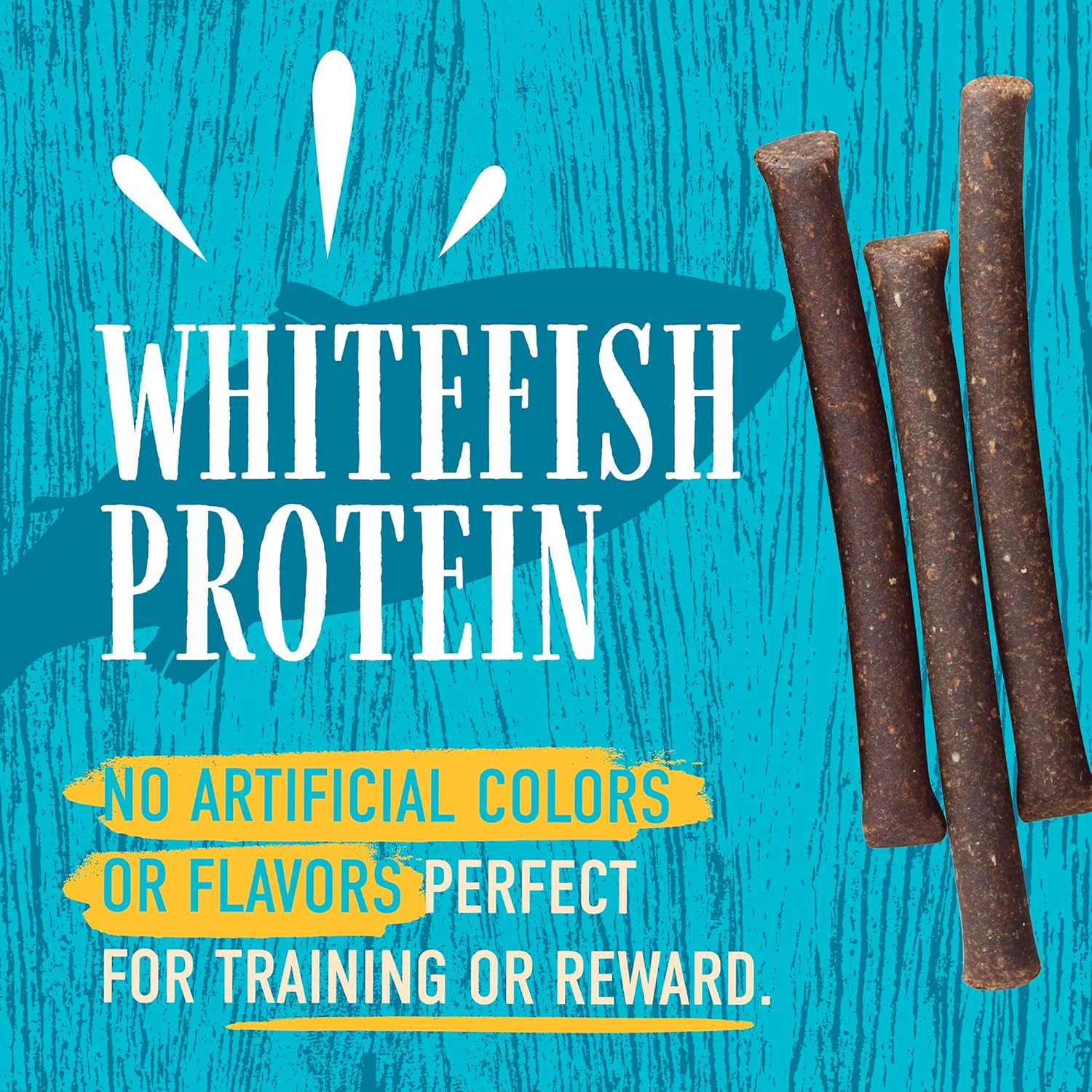 Delicious, grain- and gluten-free jerky sticks made with wild-caught Pacific Whiting Meal--the #1 ingredient and packed with high-quality protein and balanced Omega fatty acids to support your dog's muscles, skin, and coat. Made in the USA in state-of-the-art kitchens, these chewy treats are perfect for training or everyday rewards.