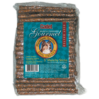 Cadet Rawhide Munchy Sticks Beef Basted Dog Treats 5" 100PCK