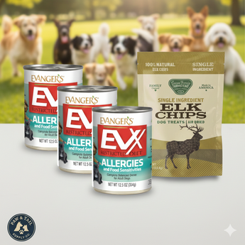 Sensitive Support Bundle 3× EVX Restricted Diet 12.5 oz + Elk Chips Treats Poultry-Free