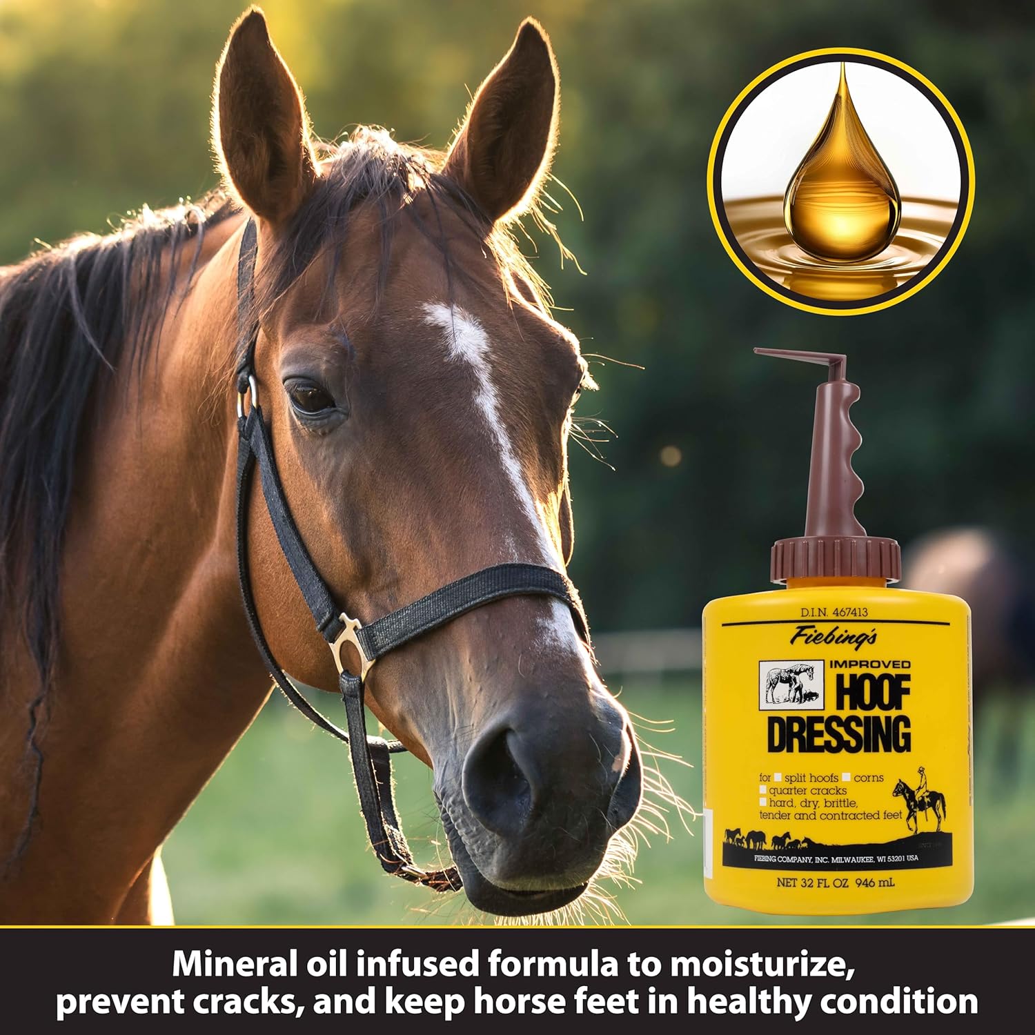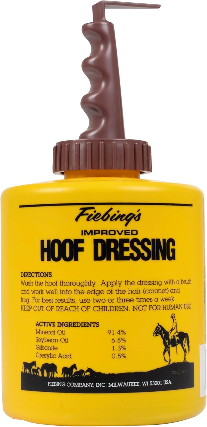 Fiebing's Hoof Dressing is designed to restore and condition damaged hooves, penetrate deep to improve the texture and elasticity of the hoof wall and leave the hoof with a healthy balance of moisture.