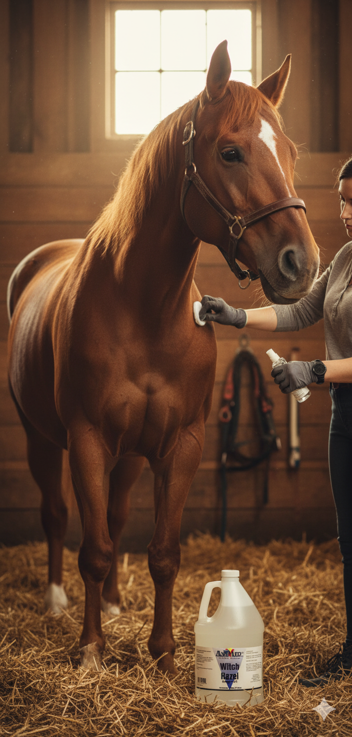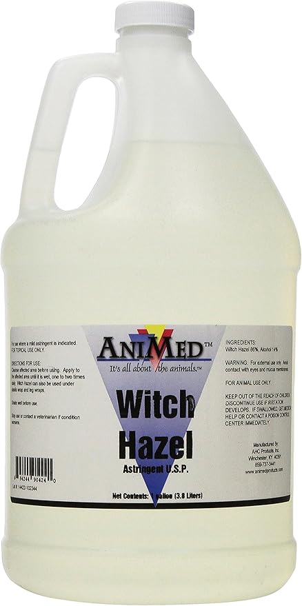 AniMed Witch Hazel astringent for animals. 86% witch hazel formula soothes minor cuts, scrapes, insect bites & skin irritations. Reduces swelling. Gallon size for horses, dogs, pets. Topical use only.