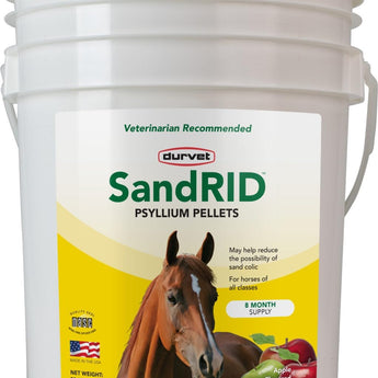 Durvet Equine Sandrid Psyllium Pellets are a must-have for every horse owner. Specially formulated to help promote healthy digestion, these pellets encapsulate sand and dirt to help prevent colic and improve stool consistency. Whether you're managing constipation or supporting overall gut health, this effective formula is designed for horses of all sizes and ages. The pleasant apple and molasses flavor ensures easy consumption, making it a hassle-free addition to your horse's routine. Made proudly in the USA, you can trust Durvet for premium quality and results.