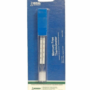 Ideal's veterinary thermometers are made to provide long and accurate service. Thermometers are 5" long and easy-to-read. Normal temperatures for horses, sheep, pigs, cows, and dogs are included. Ideal's digital thermometer is quick-reading, beeps when ready and displays digital temperatures in Fahrenheit.