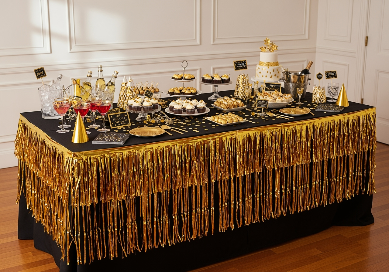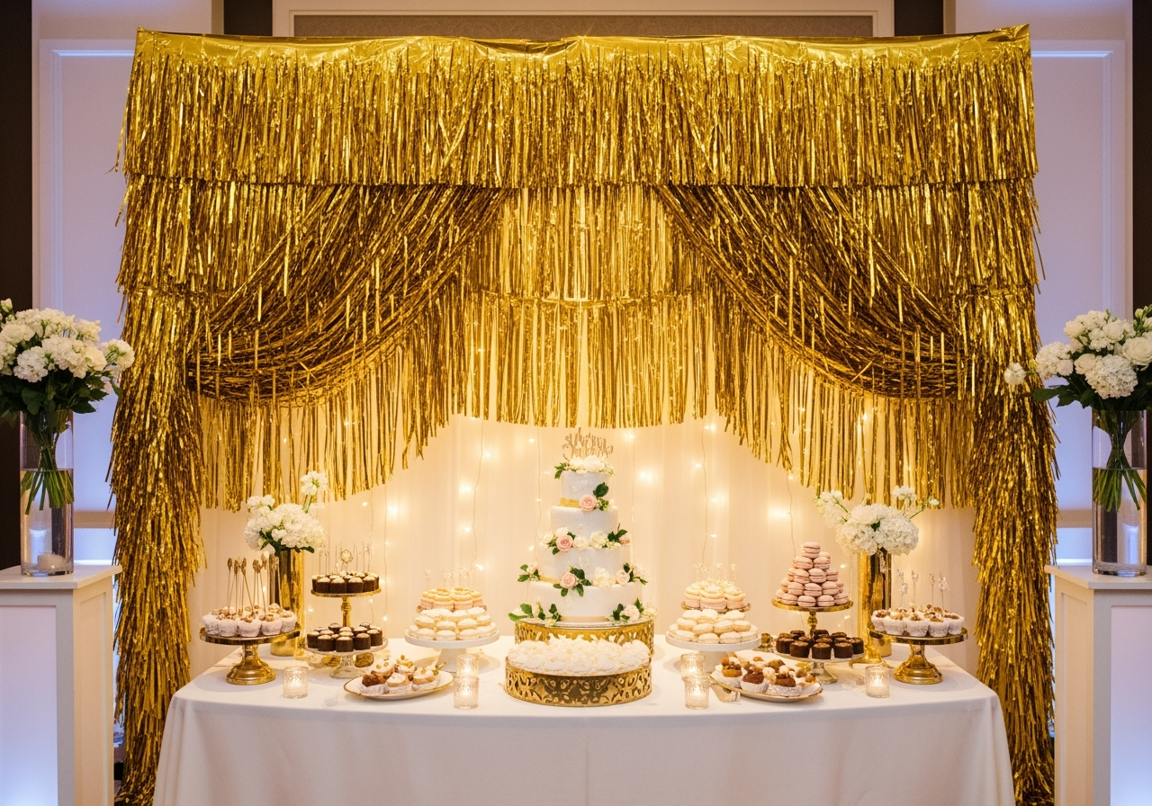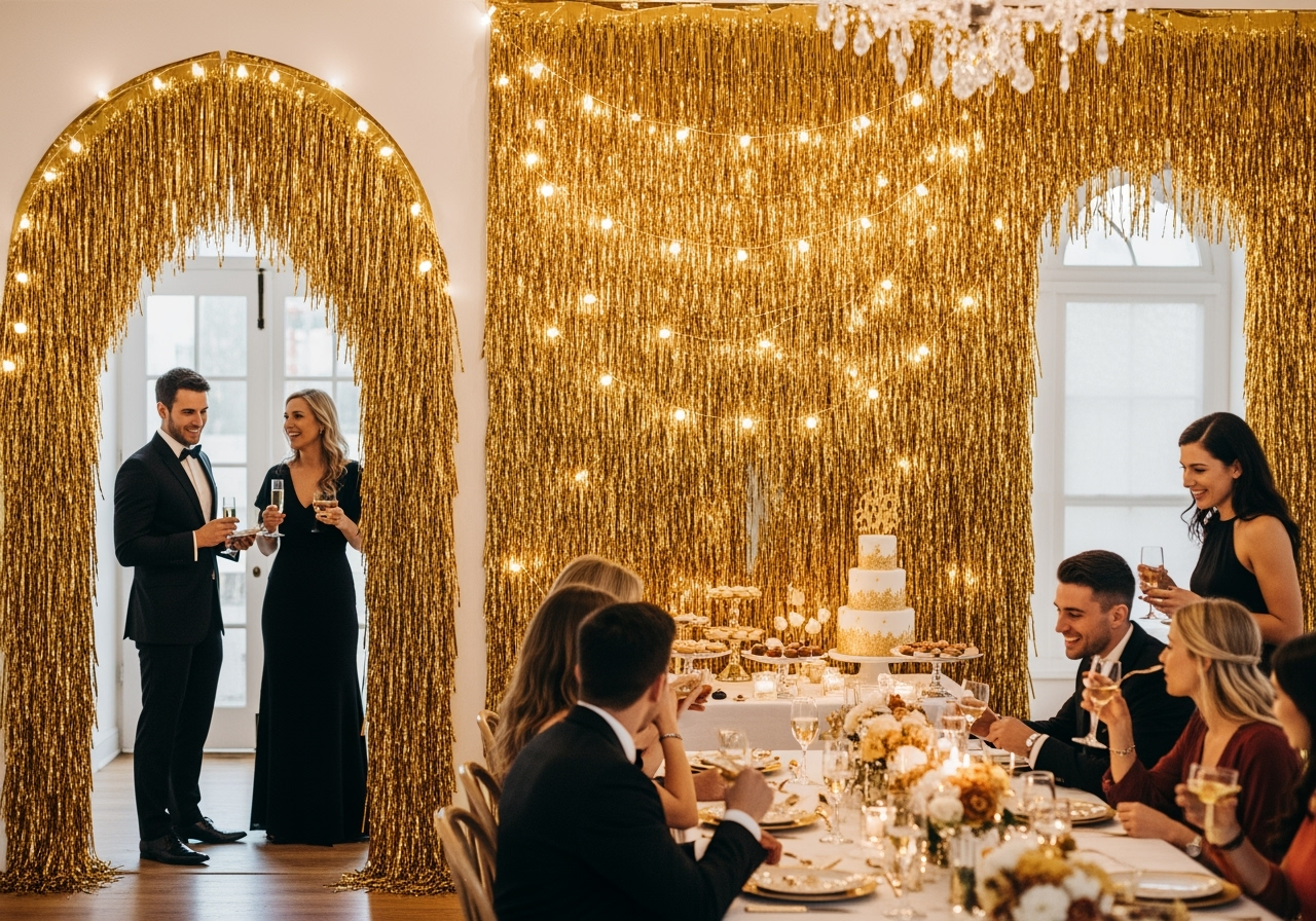 Transform any space with this beautiful gold tinsel fringe garland. Designed to add stylish sparkle to parties, patios, doors, and celebrations everywhere.