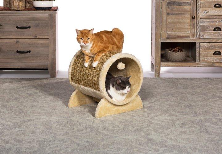 Prevue Pet Products Cozy Tunnel 7383 is an interactive play area for your cat or kitten. Watch as kitty engages in energetic activity - playing with the dangling toy, scratching the sea grass covered panel or climbing in, out, over and around the Cozy Tunnel. A super soft, plush interior is perfect for cat naps while the dangling puff ball toy begs to be batted. The large woven seagrass surface encourages exercise as your cat scratches and stretches, toning muscles while grooming nails and strengthening paws. With areas for playing, napping, lounging, scratching and perching felines love the full range of amenities created to satisfy behavioral instincts while discouraging destructive behavior and alleviating boredom.