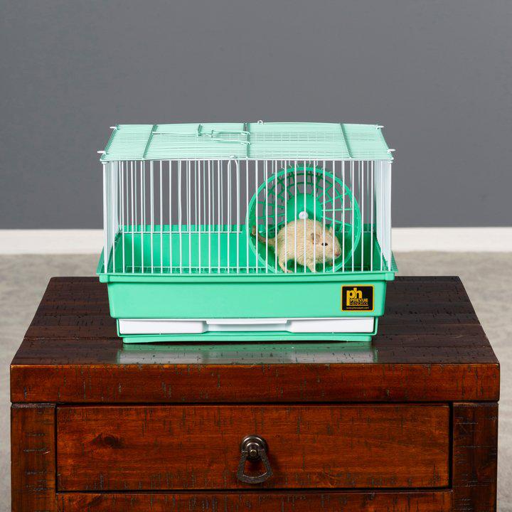 Prevue Pet Products single-story hamster & Gerbil Cage makes a great home for your hamster or Gerbil. Owner friendly features include a top-opening door, allowing you easy access into the cage, plus a removable bottom grille and pull-out tray for convenient cleaning. A color coordinated exercise wheel is included is to keep your hamster or Gerbil entertained while maintaining necessary activity levels. Ideal for hamsters and gerbils our single-story hamster & Gerbil Cage.