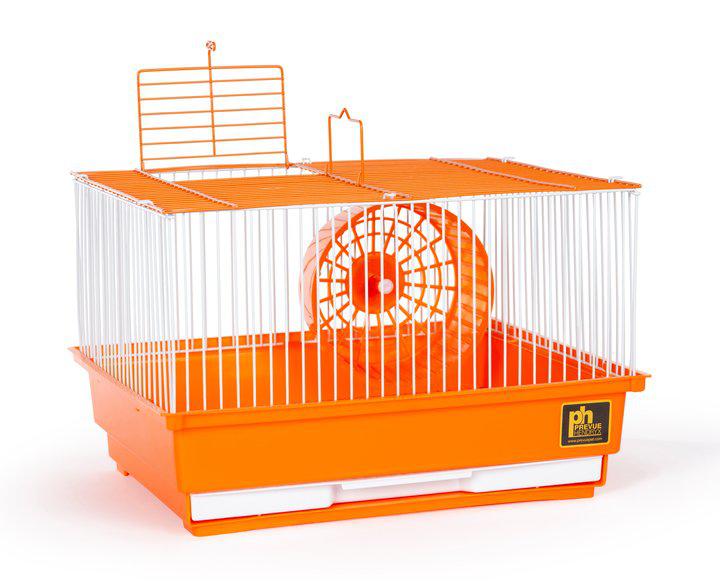 Prevue Pet Products single-story hamster & Gerbil Cage makes a great home for your hamster or Gerbil. Owner friendly features include a top-opening door, allowing you easy access into the cage, plus a removable bottom grille and pull-out tray for convenient cleaning. A color coordinated exercise wheel is included is to keep your hamster or Gerbil entertained while maintaining necessary activity levels. Ideal for hamsters and gerbils our single-story hamster & Gerbil Cage.