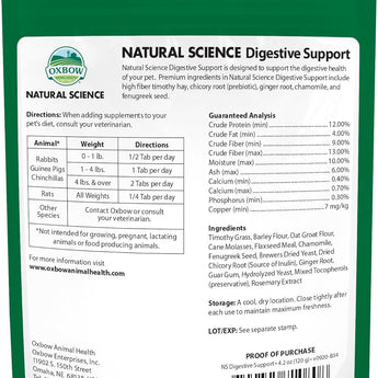Oxbow Natural Science Digestive Support 60ct Small Pet Supplement Timothy Hay