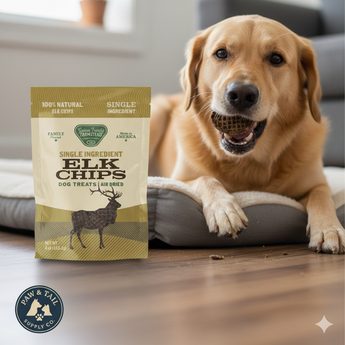 - Single-ingredient elk chips: high-protein, low-calorie dog treats