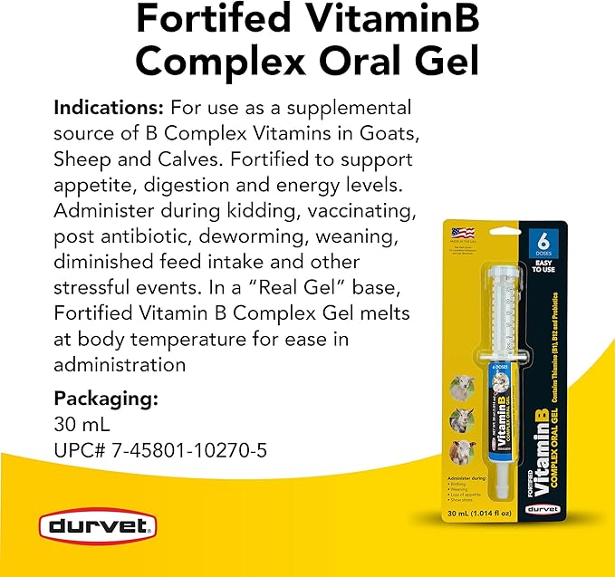 Durvet Vitamin B Complex Oral Gel for Goats Sheep Calves 30mL