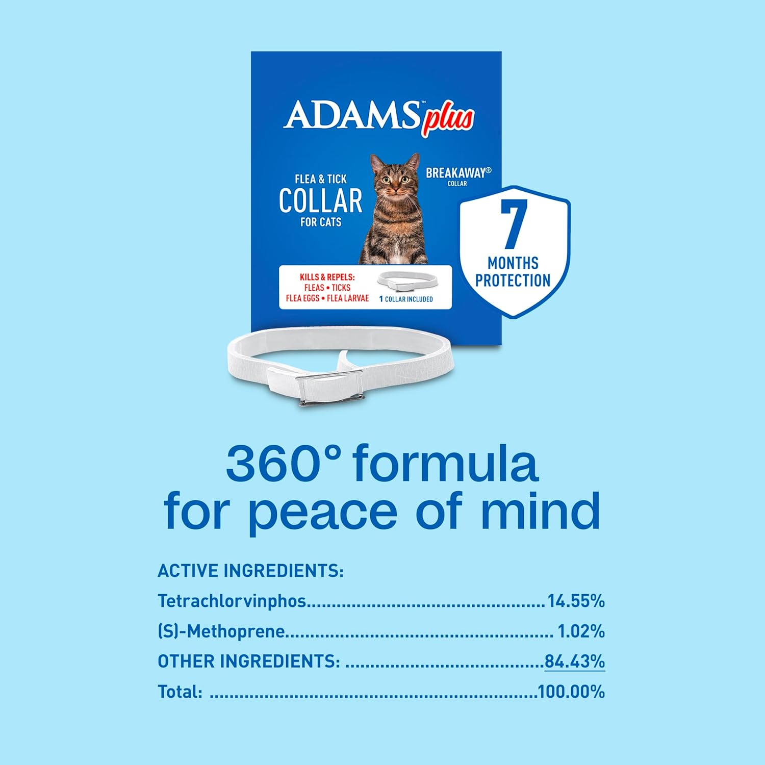 Adams Plus Flea & Tick Collar for Cats Water-Resistant Up to 7 Months Protection