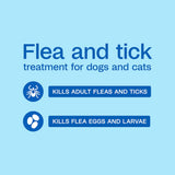 - Kills adult fleas, flea eggs, flea larvae, and ticks