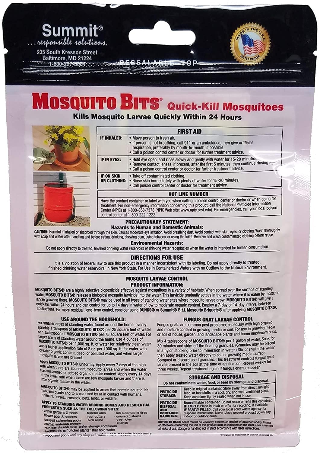 The bits will give a quick kill within 24 hours. May be applied to areas used by humans, fish pets and wildlife.