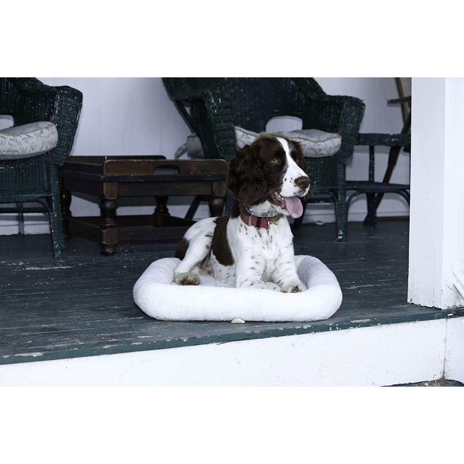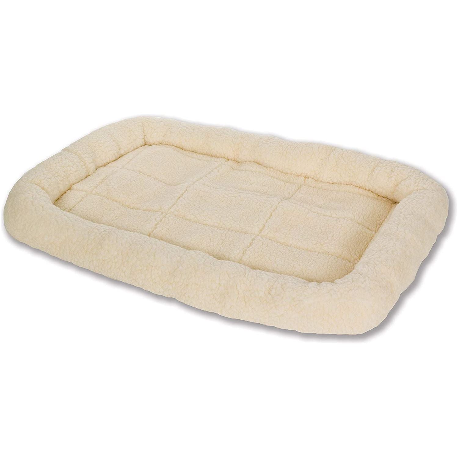 Your pet will appreciate this plush, cushioned, cotton-and-poly fleece bed. The double-thick bolster provides a sense of security. Ideal for use in crates, carriers, and houses, as well as a standalone bed. Machine washable and dryable rolls up for storage. Measures 29 inches long by 21.25 inches wide.