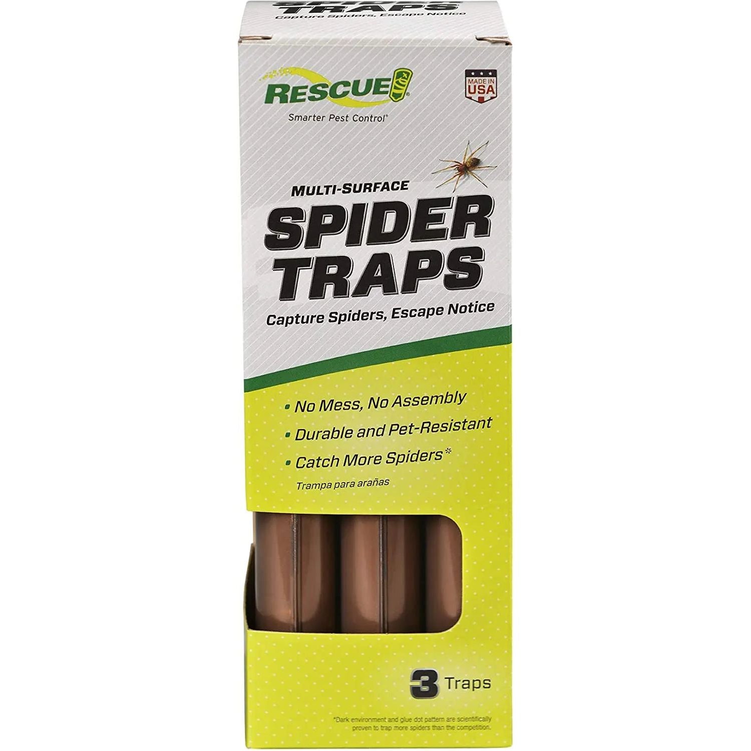 RESCUE! Spider Trap is ready right out of the box -- just place it where spiders are typically found indoors. With four entrances and hundreds of glue dots, spiders will travel to the interior of the trap instead of merely congregating on the edges. This design allows many more spiders to be caught. And with two sides of glue, a quick flip of the trap keeps you in the spider-catching business.