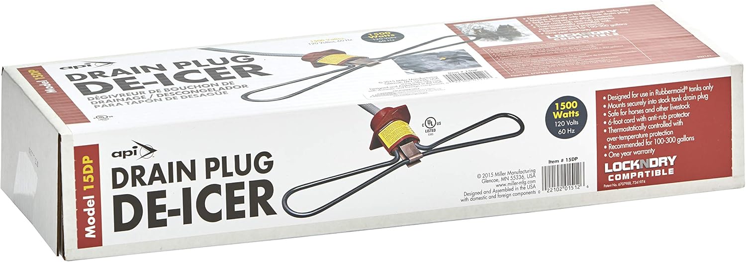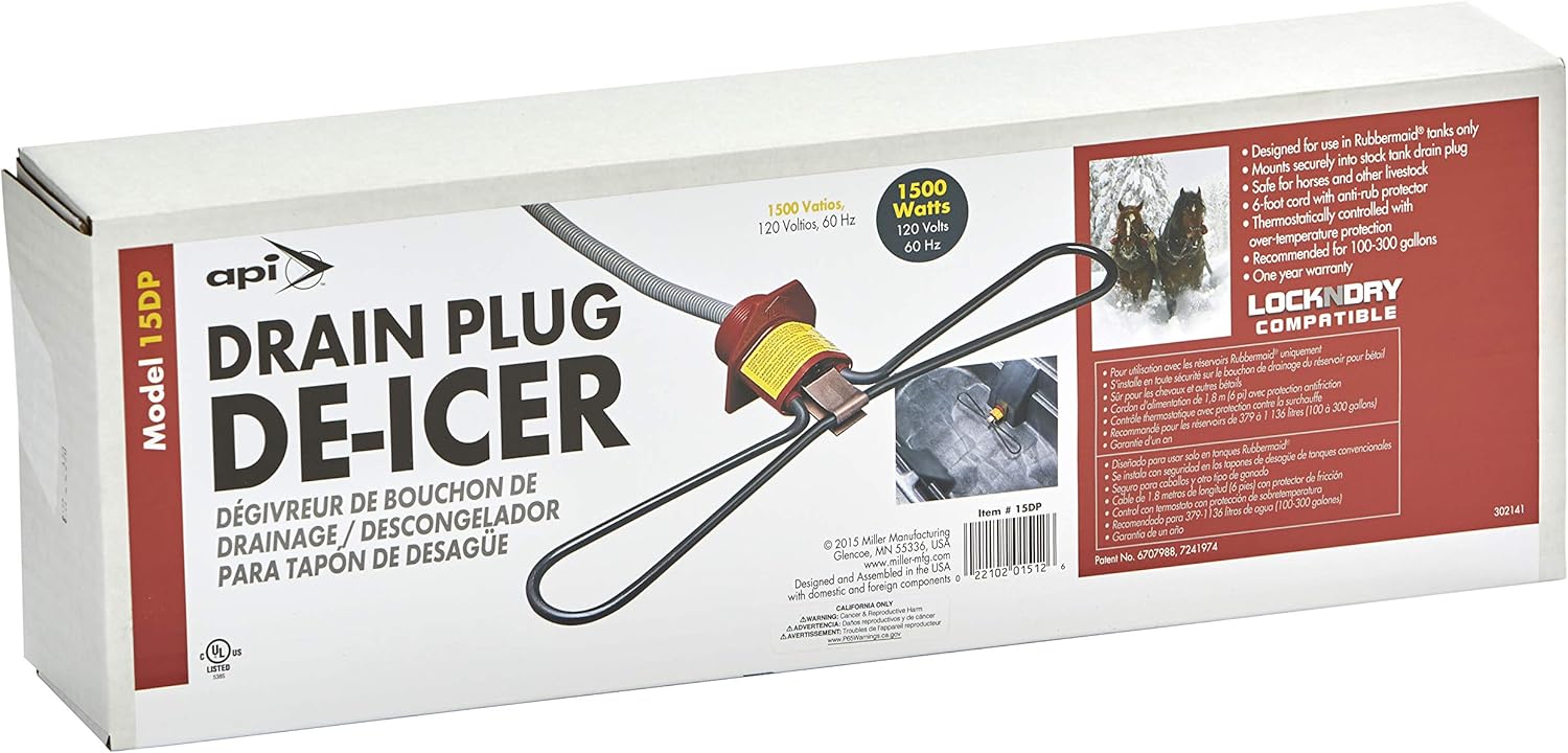 API Stock Tank Water Trough Heater 1500W Pond Drain Plug De-Icer Livestock
