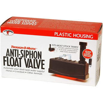 Anti-Siphon Float Valve automatically controls water level for most plastic and metal stock tanks, troughs, barrels, and pans