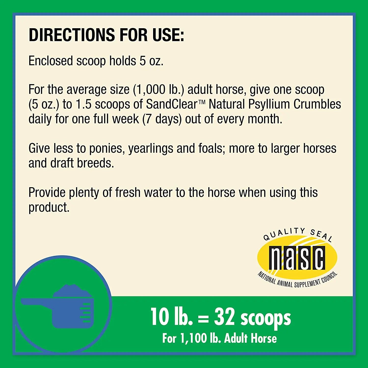 3 lbs. Of sand clear natural psyllium crumbles to help to reduce the risk of sand colic.