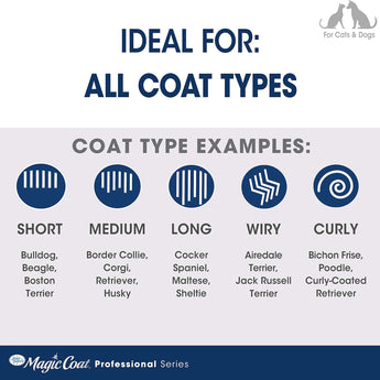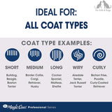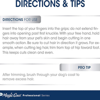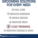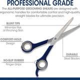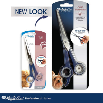 The Magic Coat Professional Series features premium multi-purpose pet grooming tools for a salon-like experience right at home. The All-Purpose Grooming Shears are designed with ergonomic handles for comfortable control and high-quality blades for ultimate precision. The blunt tips on these grooming shears minimize the risk of pinching your dog's skin.