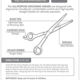 Meanwhile, this dog grooming tool features rubber finger grips that offer safe and accurate trimming. Our dog groom shears are ideal for all coat types. Plus, they're perfect for grooming cats!