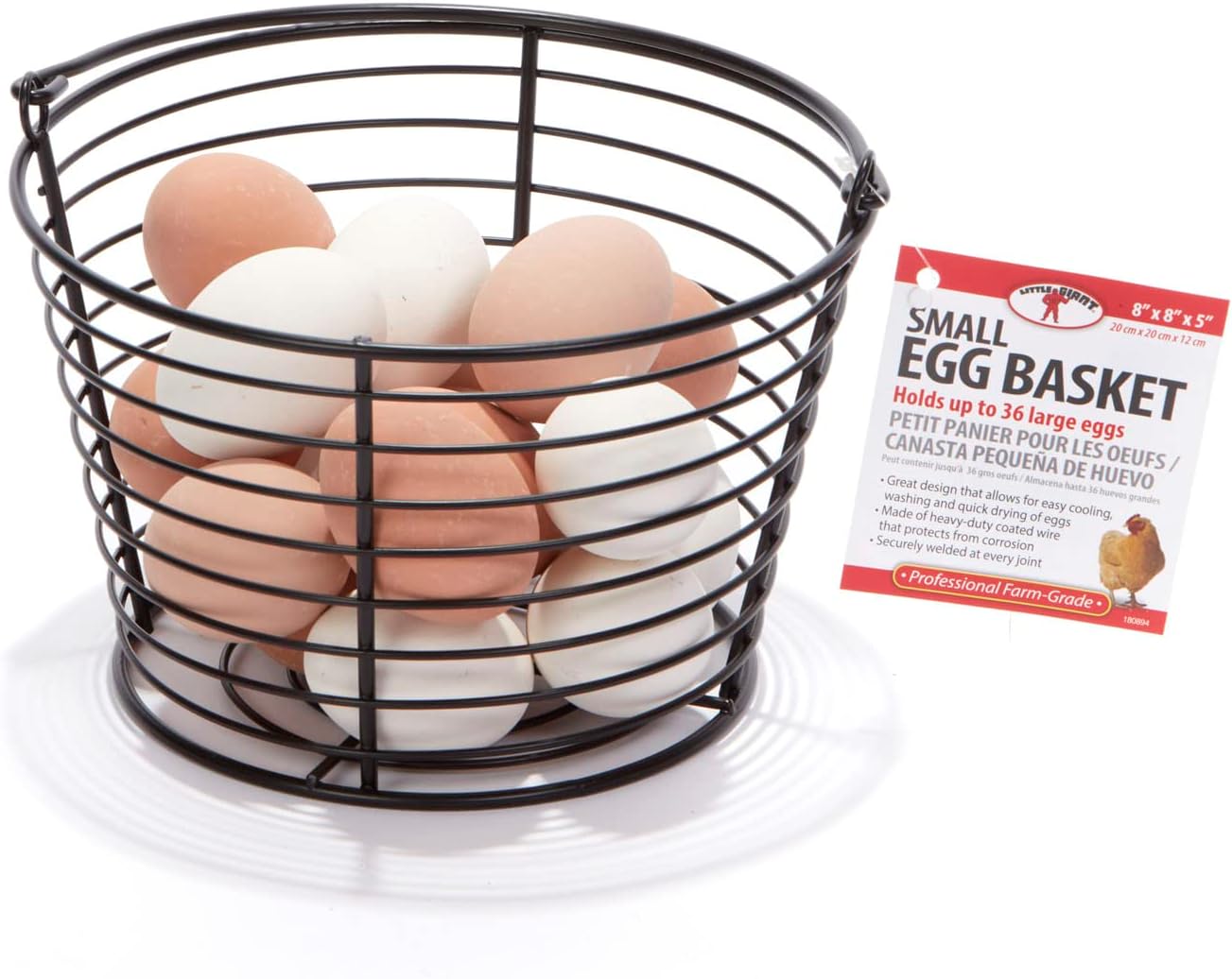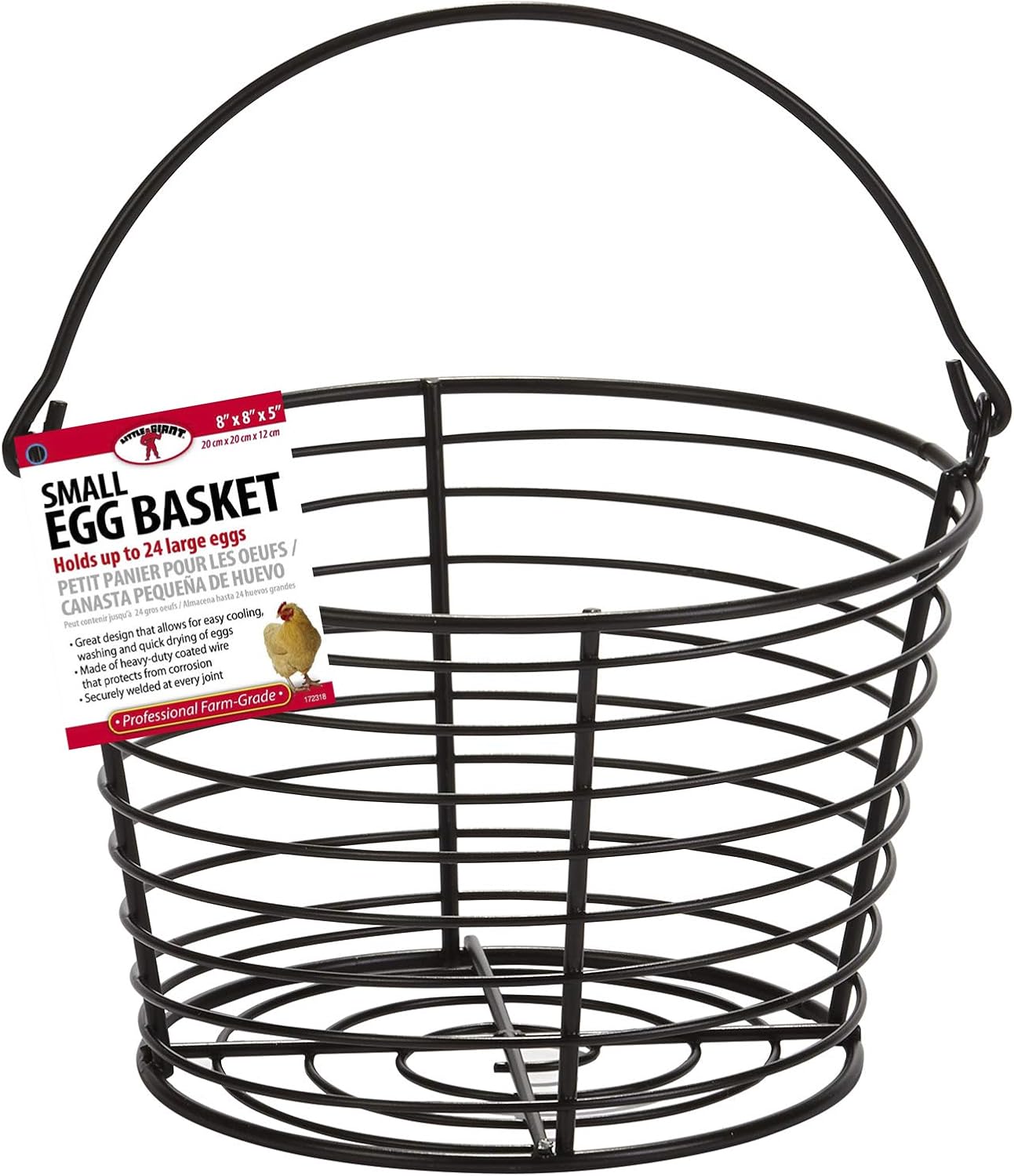 Little Giant Small Egg Basket features design that allows for easy cooling, washing, and quick drying of eggs. Holds up to 3 dozen large eggs. Made of heavy-duty coated steel wire that protects from corrosion. Securely welded at every joint for long-lasting durability. Measures 8" x 8" x 5". Perfect for small farm egg collection, washing, and storage.