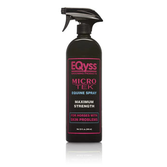 EQyss Micro-Tek Equine Spray 32 oz is a fast-acting horse skin spray that helps relieve itching, scratching, biting, and rubbing, including sweet/summer itch. Botanical, pH-balanced formula is made without harsh detergents, alcohols, or irritants for a residue-free finish. Gentle enough for open wounds and sensitive areas; safe for horses, ponies, mares, and foals.