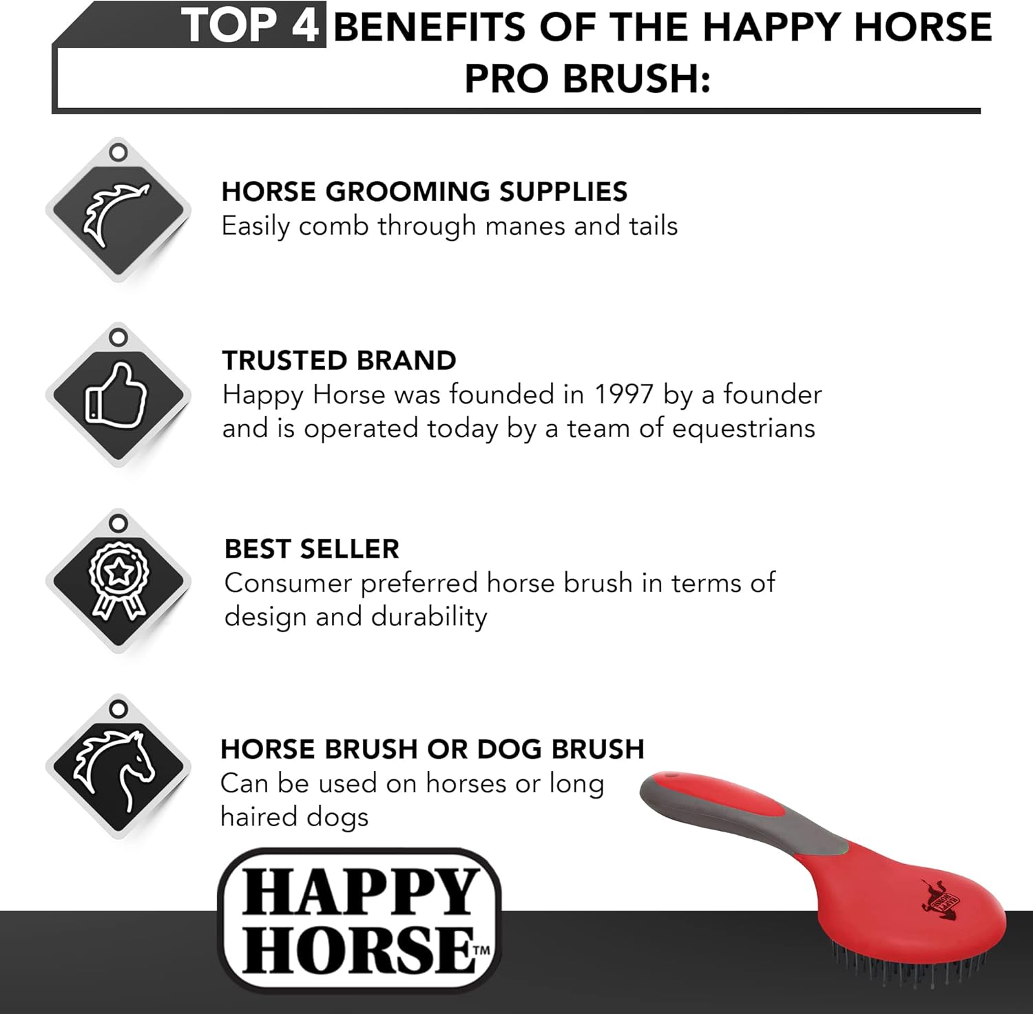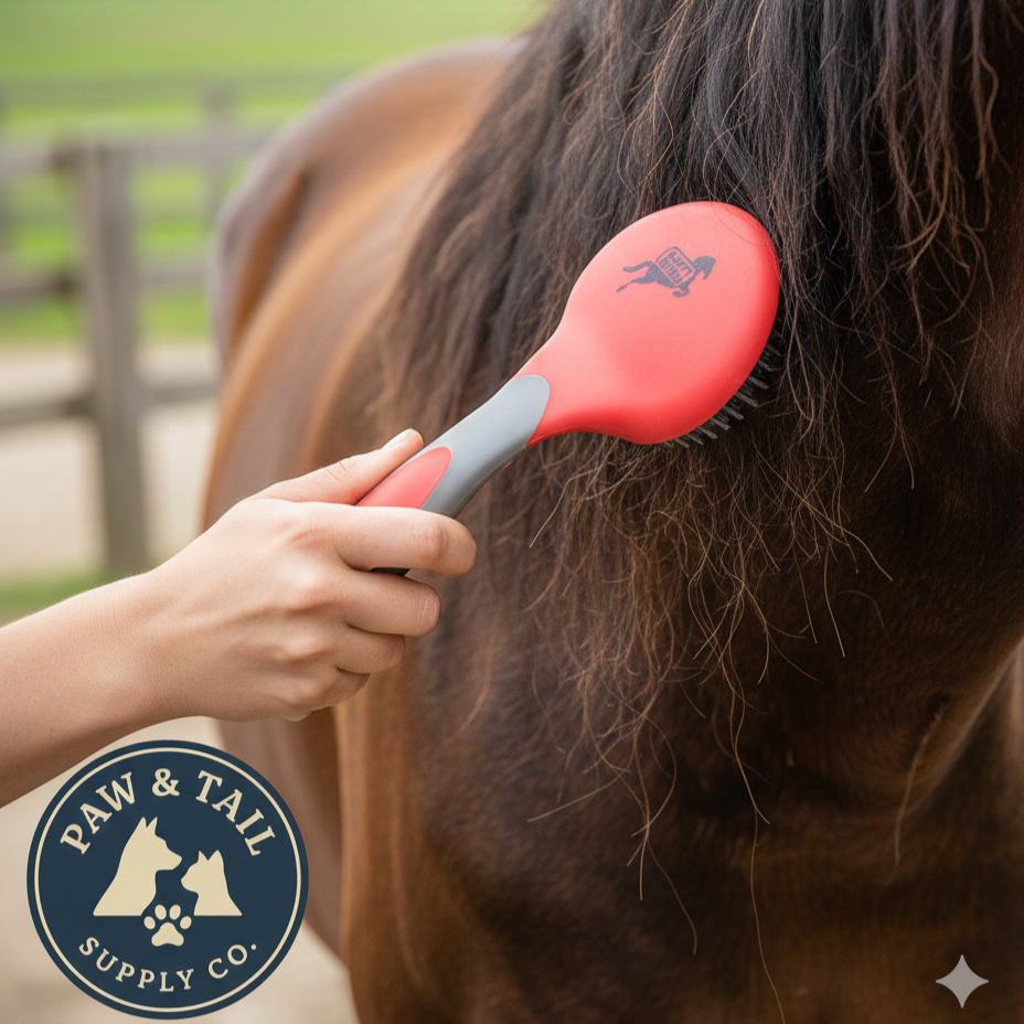 ✔ Mane & Tail Grooming Brush (large round head, ball-tipped bristles)