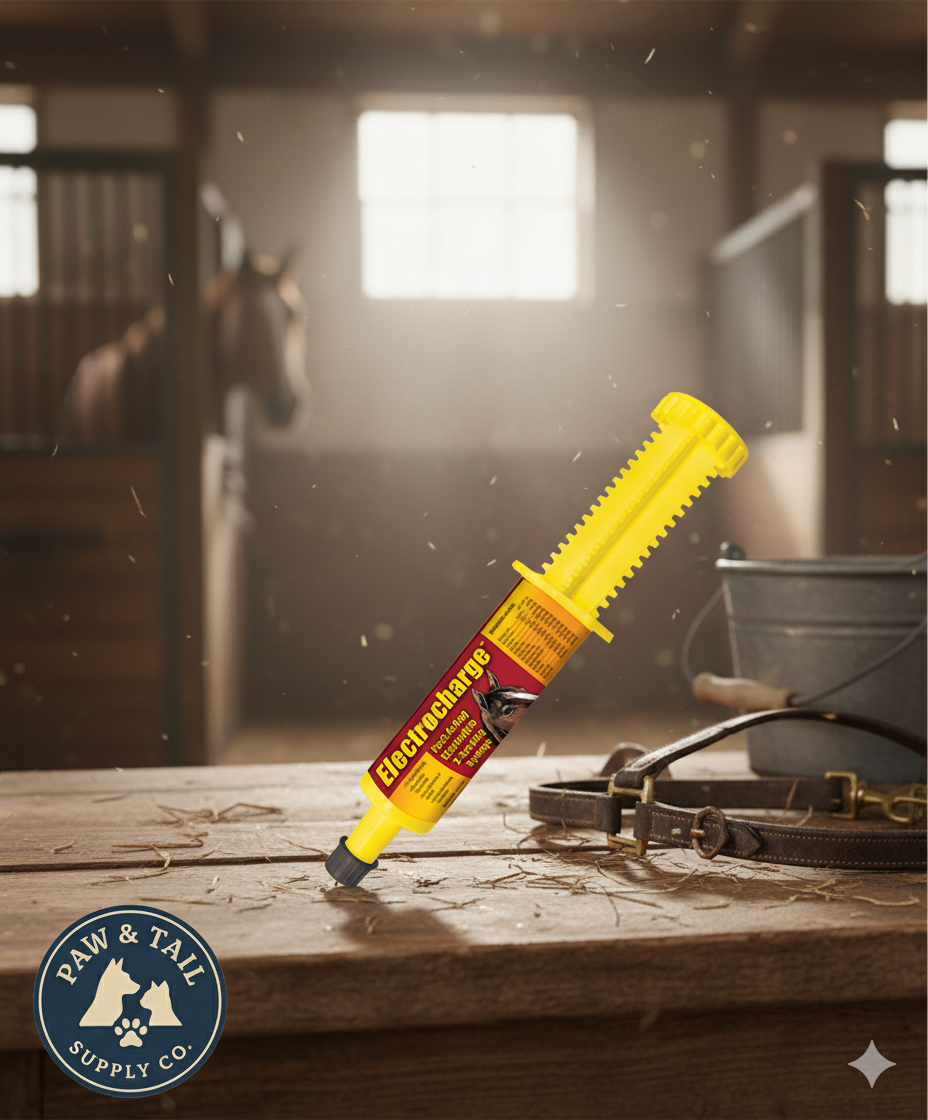 Finish Line Electrocharge Horse Oral Electrolyte 2oz is a concentrated, fast-acting blend of electrolytes and trace minerals for horses. Each syringe contains 2 doses to quickly replace electrolytes lost through sweat. Perfect for endurance, racing, barrel racing, and 3-day eventing.