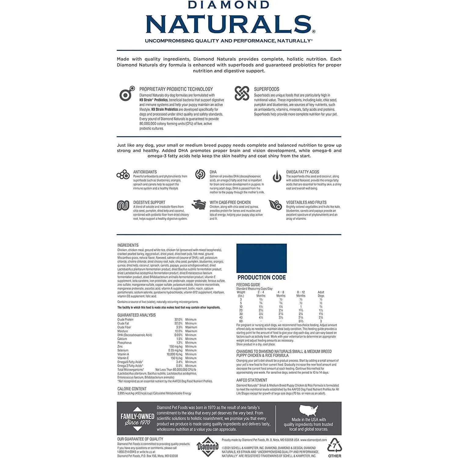 DIAMOND NATURALS SMALL & MEDIUM BREED PUPPY CHICKEN & RICE FORMULA