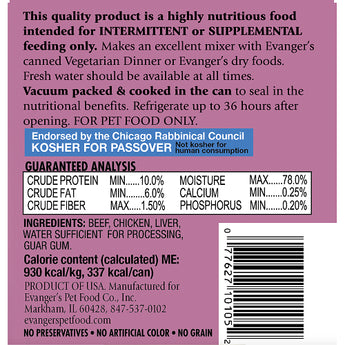 Evanger's Heritage Classic Beef Chicken & Liver Dog Food Grain-Free 20.2oz Jumbo Size