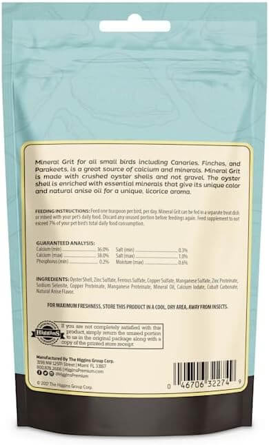 Higgins Mineral Grit Small Birds 6 oz. Calcium Canaries Finches Parakeets