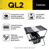 Dogtra QL2 features a vented launcher for maximum air flow to enhance scent distribution, making it easier for your dog to wind the bird in the launcher. Our patented adjustable spring tension allows adjustment of throwing height and makes for a very quiet launch, a real must for starting a shy dog on birds. QL2 Launcher Dimensions 8.6" x 4.5" x 4.3". RR Deluxe electronics are needed to operate either PL or QL2 launcher and are sold separately.
