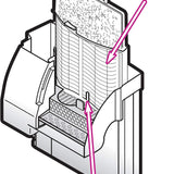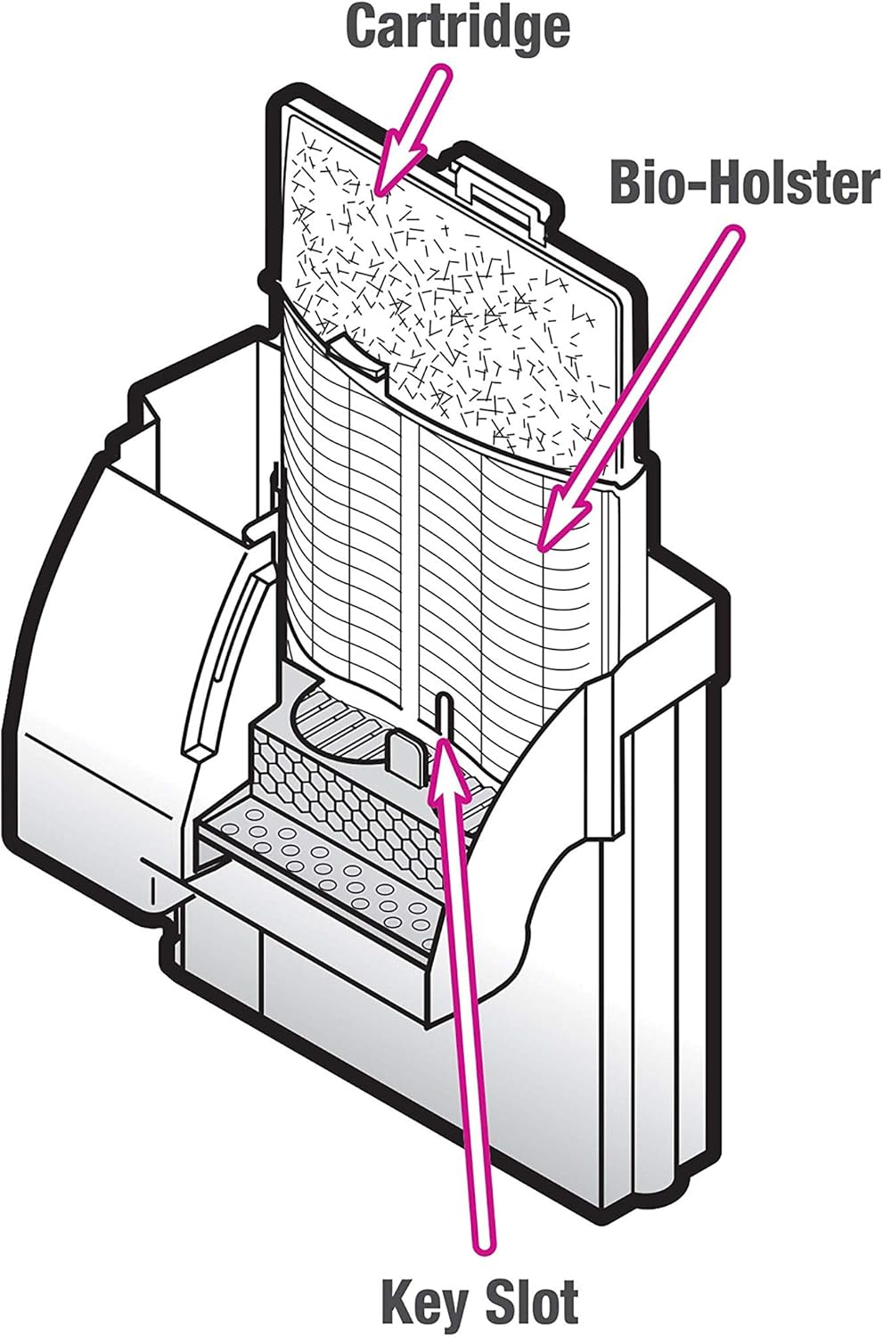 - Align cartridge bottom key slot for an accurate fit inside the filter