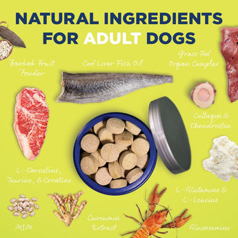 - Supports strong bones and healthy joint mobility in adult dogs