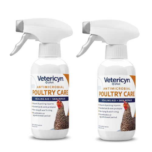 Care for your flock with Vetericyn Plus Poultry Care Advanced Cleanser. This gentle spray helps clean cuts, scratches, abrasions, and pecking sores on chickens and other poultry.