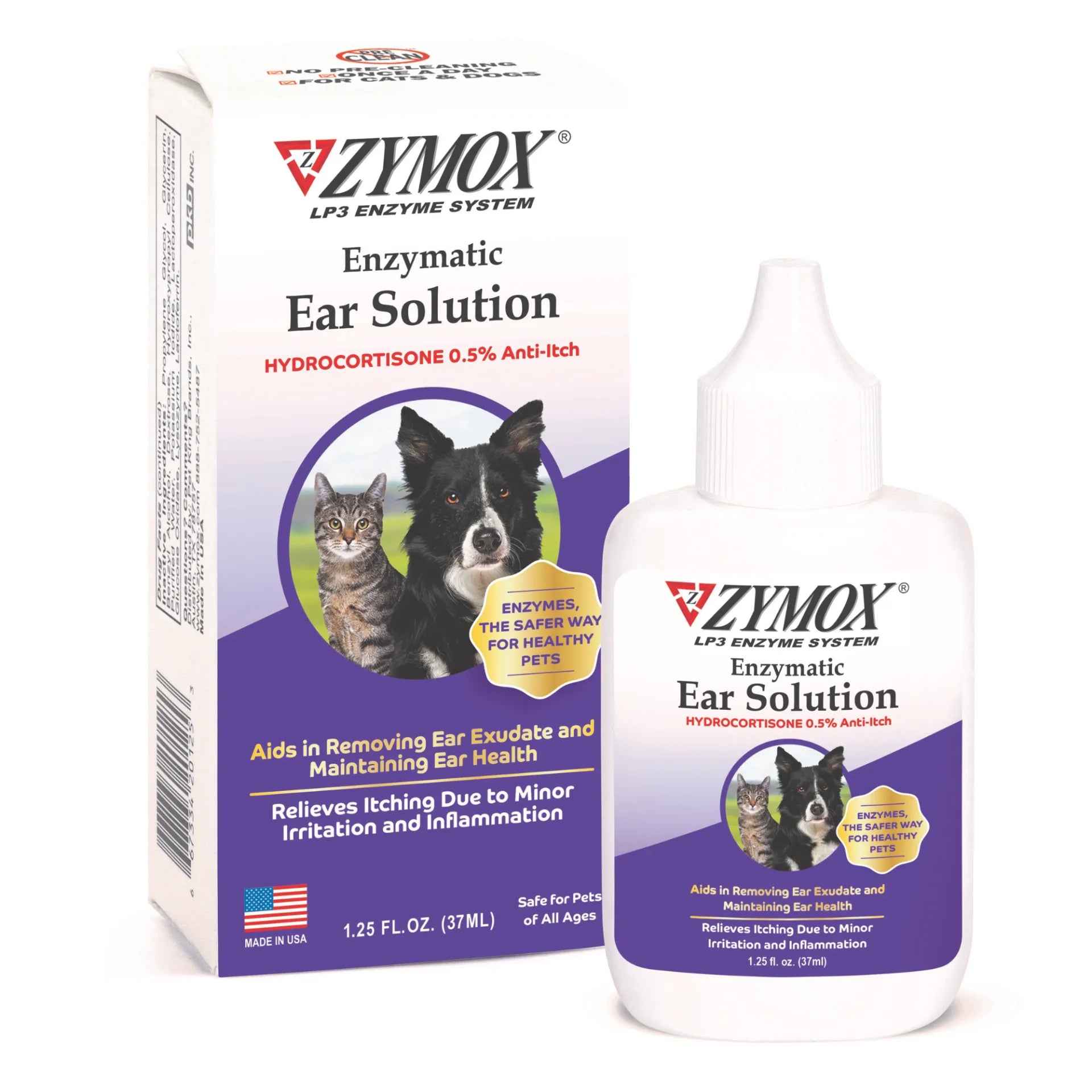 - Enzymatic ear solution for dogs & cats with 0.5% hydrocortisone